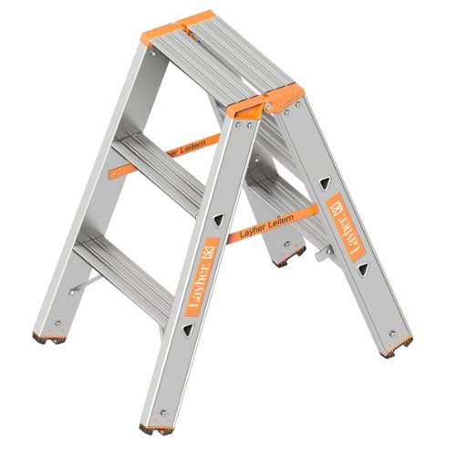 Layher Stufenstehleiter TOPIC 3 Stufen; Aluminiumleiter 2x3 Stufen 80 mm breit, beidseitig begehbar, klappbar, Länge 0.75 m