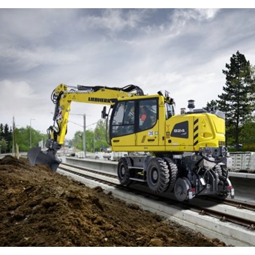 Der A 924 Rail Litronic kann als Zweiwegemaschine wahlweise auf der Straße oder auf Eisenbahnschienen eingesetzt werden. An beiden Seiten des Unterwagens ist das Schienenfahrwerk angebracht. Während des Aufgleisens wird achsweise die Schienenführung abgesenkt, bis die inneren Räder der Zwillingsbereifung am Schienenrad anliegen und für den Reibschluss des Fahrantriebes sorgen.