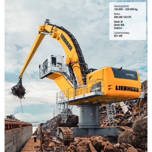 Die neue Umschlagmaschine LH 150 Industry vereint eine moderne und innovative Konzeption mit außerordentlicher Leistungsfähigkeit und äußerst robuster Bauweise. Das prämierte Liebherr-Energierückgewinnungssystem oder das Mehrkreis-Hydrauliksystem „Positive Control“ sind zwei Exempel der zahlreichen Hightech-Ausstattungen. Der modulare Aufbau von Grundmaschine und Ausrüstung bietet optimale Lösungen für alle Einsätze. Die individuelle Anpassung der Maschine an die jeweiligen Bedürfnisse kombiniert mit den hochtechnologischen Ausstattungen garantiert maximale Umschlagleistung bei zugleich überragender Wirtschaftlichkeit.