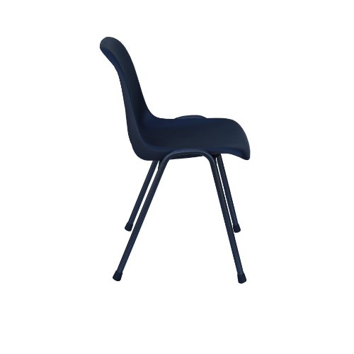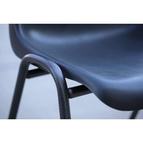 Formschalenstuhl mit ergonomisch geformter, durchgehender Sitzschale aus bruchsicherem Polyamid in anthrazit. Rundrohrgestell aus Stahl mit Bodengleitern, Ø 22 mm, pulverbeschichtet in Hammerschlag schwarz. Bis zu 15 Stück stapelbar. H 450 x B 410 x T 510 mm.
