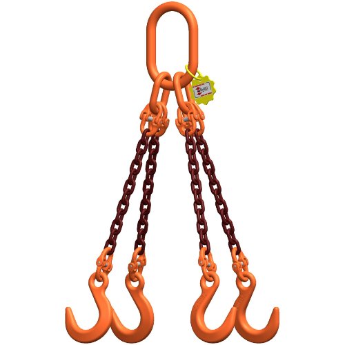 McBULL® 4-Strang-Kettengehänge nach EN 818-4 (mit höherer Tragfähigkeit), Güteklasse 10, mit PAS-Kette, 8 mm, Grundpreis 1 Meter Nutzlänge, Tragfähigkeit 0-45°=5300 kg / 45-60°=3750 kg, oben mit Standard-Aufhängering und am Ende mit Giessereihaken mit Öse, Achtung: Dies ist der Artikel für eine Nutzlänge von 1 Meter. Bei Bedarf von einer anderen Nutzlänge muss der Artikel -HPX48SLMEHR- je weiteren Meter dazubestellt werden. Falls eine Verkürzung benötigt wird, muss der Artikel -HPX48SLVKKS, HPX48SLVKHG oder HPX48SLVKHÖ- je Verkürzungseinheit dazubestellt werden.