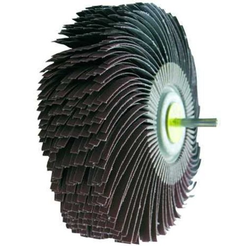 Schleifmop mit Einspannschaft und hochflexiblen, längs geschlitzten Lamellen speziell für die Bearbeitung stark profilierter Teile auf handgeführten Maschinen.