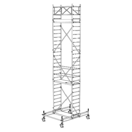 müba-Alu-Fahrgerüst Typ 70/6-180, Arbeitshöhe 8,65 m, Gerüsthöhe 7,75 m, Standhöhe 6,65 m, Standfläche 0,65 x 1,80 m, Belastung 2,0 kN/m², Aufbau- und Verwendungsanleitung beachten!