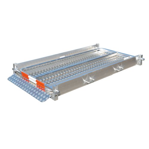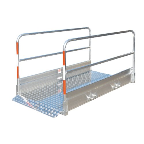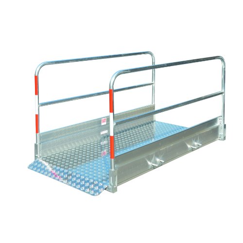 rutschfeste Oberfläche aus geriffeltem Bodenblech, Geländer klappbar; mit integriertem Auffahrblech