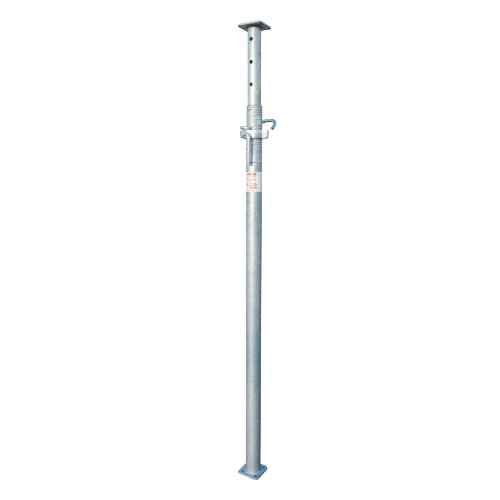 Baustütze mit Außengewinde, verzinkt Nach DIN-Euro-Norm 1065 (Klasse B/D), mit G-Haken für Grobeinstellungen in 10 cm Abstand, robustes Trapezgewinde, Ausfallsicherung gegen Herausfallen des Innenrohrs, mit Flachkopf 140 x 140 x 8 mm.