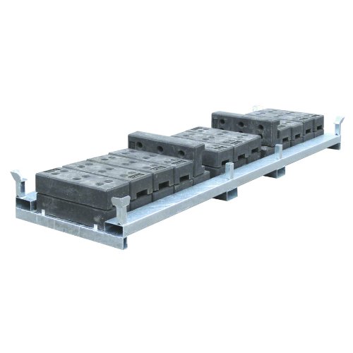 müba-Bauzaunfußpalette zur Aufnahme von 26 Bauzaunfüßen passend zu Art.-Nr.15170, Länge 3,60 m, Breite 1,06 m, verzinkt