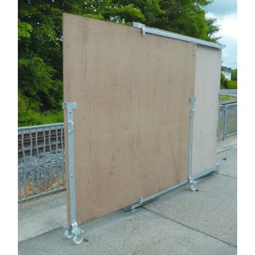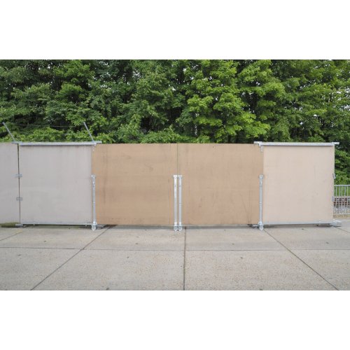 Mindestanzahl für die Bestellung von "müba-Beschlagsatz für Schiebetor (Holzbauzaun) bestehend aus: 3 Torfahrwerken, 2 Führungsschienen, 2 Verschlusslaschen, 1 Ausfahrsicherung" ist 1.