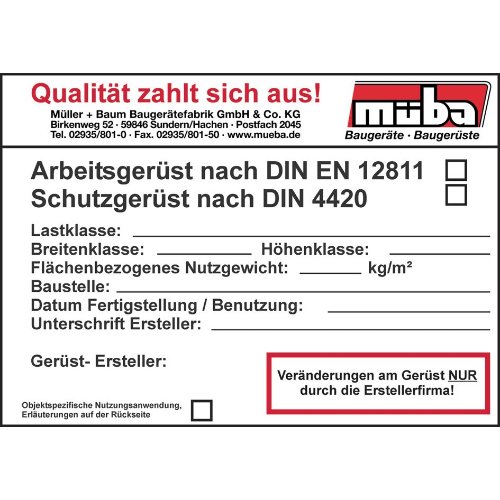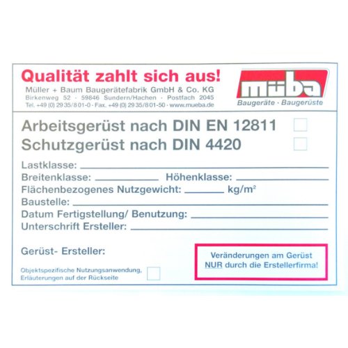 Einlageblätter für Gerüsttaschen (verpackt zu 100 Stück)