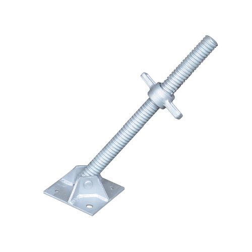 müba-Gewindefussplatte Ø38mm, Gesamtlänge 520mm, schwenkbar, Tragfähigkeit 25 kN, verzinkt (zusätzliche Gerüstaussteifung am Fußpunkt in Längsrichtung
