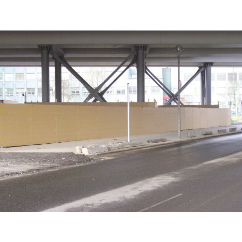 Mindestanzahl für die Bestellung von "müba-Holzbauzaun aus speziell gepresster Spanplatte, Länge 2,17 m, Höhe 2,04 m, Stärke 20 mm" ist 1.