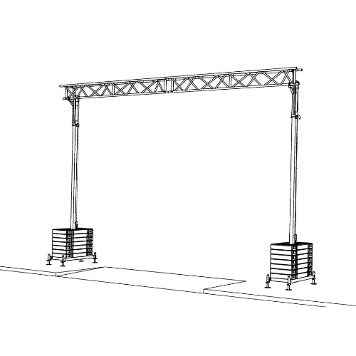 Kabelbrücke Typ KB 7,5 Standardausführung bestehend aus 2 Masten und 2 Alu- Gitterträgern 4,10 m. Ballastierung je Mast 994 kg, entspricht 28 müba Betonfüßen. Lieferumfang ohne Ballast. Die Aufbau- und Verwendungsanleitung ist zu beachten!