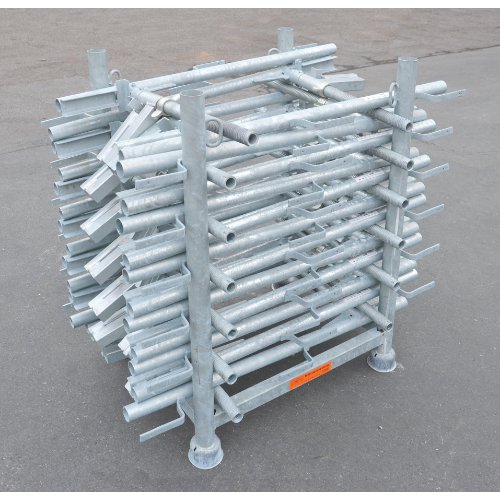 Mehrzweckpalette, verzinkt zur Einlagerung von 44 Schaltafeln zur Einlagerung von 10 Gerüstböcken mit den Maßen: Breite: 1,20 m, Höhe: 1,00 m 1,75 m oder Breite: 1,20 m, Höhe: 1,20 m 1,95 m oder Breite: 1,50 m, Höhe: 1,20 m 1,95 m