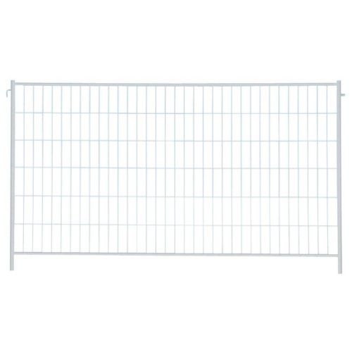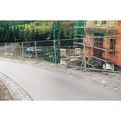Bauzaun Typ B, 3,50 x 2,00 m Standrohre: 42,4 mm Durchmesser oberes-unteres Querrohr: 27 mm Durchmesser Vergitterung aus Rundstahl: ca. 4 mm Durchmesser