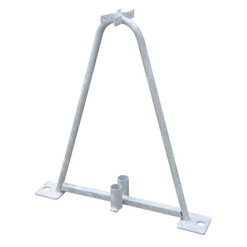 müba-Mobilzaunständer mit 2 Aufnahmehülsen und 2 Löchern für Erdnägel, mit 2 Maschinenschrauben M8 x 70, verzinkt
