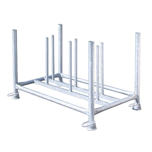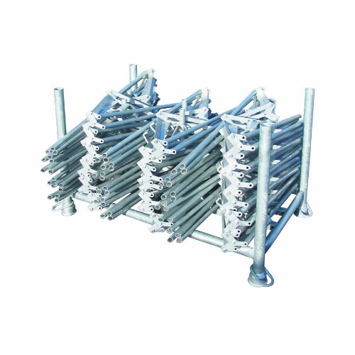 Palette für Dreifußständer Durch die spezielle Anordnung der Rohre lassen sich die Dreifußständer rutschsicher lagern. Aufnahmekapazität: bis zu 36 Dreifußständer. Verzinkt, stapelbar, sichert Ihre Dreifußständer für Schalungsstützen gegen Verrutschen beim Transport.