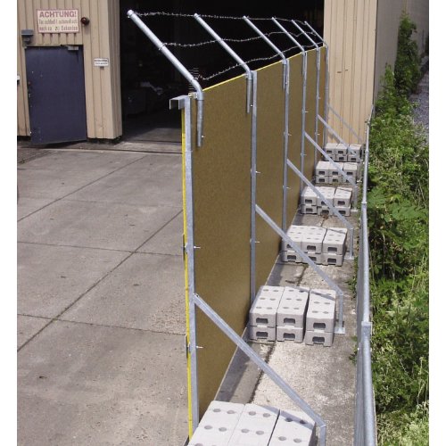 Mindestanzahl für die Bestellung von "müba-Ständer für Holzbauzaun, höhenverstellbar von 1,88 m - 2,30 m, für Wandelemente bis 43 mm einsetzbar, verzinkt" ist 1.
