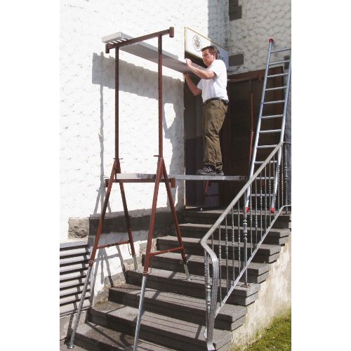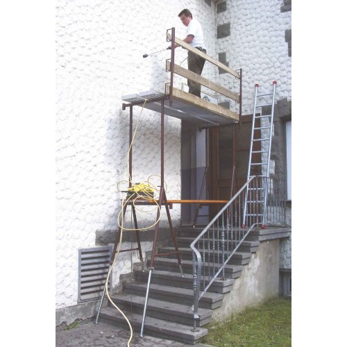 Verwandte Suchbegriffe: Höhenverstellbarer Gerüstbock, Treppengerüst, Arbeitsplattform Treppenhaus, schmaler Gerüstbock, Gerüstlösung Innenausbau.