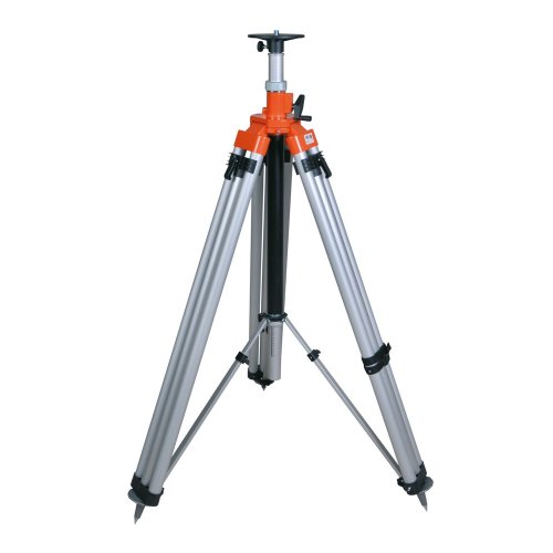 Die stabile Bauweise des Jumbo-Stativs ermöglicht einen schwingungsfreien Einsatz des Maschinensteuerungs-Lasers auch bei Wind. Die große Arbeitshöhe gewährleistet, dass der Laserstrahl nicht von Baufahrzeugen oder anderen Hindernissen abgeschattet wird.