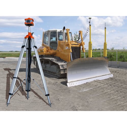 Die stabile Bauweise des Jumbo-Stativs ermöglicht einen schwingungsfreien Einsatz des Maschinensteuerungs-Lasers auch bei Wind. Die große Arbeitshöhe gewährleistet, dass der Laserstrahl nicht von Baufahrzeugen oder anderen Hindernissen abgeschattet wird.