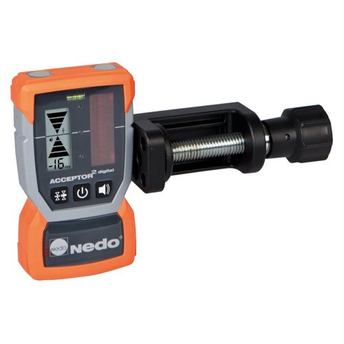 Der ACCEPTOR 2 digital mit mm-Anzeige zeigt digital die Abweichung der Null-Linie des Laserempfängers von der Laserebene des Rotationslasers an. Durch die mm-Anzeige können Höhenunterschiede beim Nivellieren direkt abgelesen werden - ohne zu rechnen.