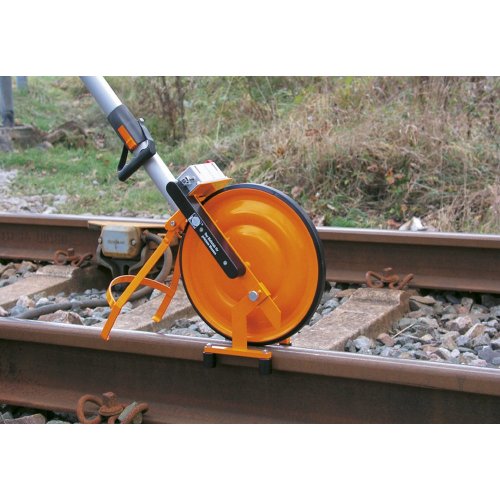 Die Schienenführung verhindert zuverlässig ein Abrutschen des Nedo Super- Messrads vom Bahngleis. Dadurch kann das Nedo Super-Messrad auch zum Messen von Gleisstrecken eingesetzt werden. Einfache Montage ohne Werkzeug.