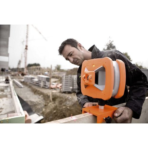 Auf modernen Baustellen wird die Gerüstschnur immer häufiger durch einen Rotationslaser ersetzt. Dieser wird dazu im Vertikalbetrieb mit Hilfe eines Schnurgerüsthalters am Schnurgerüst befestigt. Der Schnurgerüsthalter ist mit einem Drehteller versehen, mit dessen Hilfe der Rotationslaser grob ausgerichtet wird. Auf der gegenüberliegenden Seite des Schnurgerüsts wird der Laserempfänger mit dem Empfängerhalter festgeklemmt. Mit Hilfe der Auto Align-Funktion richtet sich der Rotationslaser PRIMUS 2 HVA / HVA2N dann automatisch auf die Zielposition aus. Außerdem wird durch die AutoAlign-Funktion die Strahlrichtung ständig überwacht und, wenn notwendig, automatisch nachgeführt.