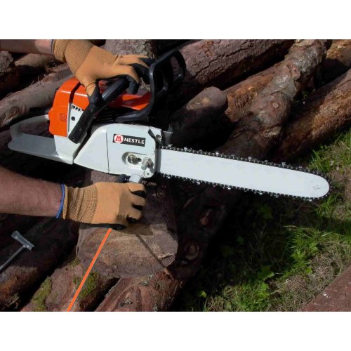 Mit dem innovativen Ablängstab KOLIBRI sparen Sie sich Zeit und Arbeit, weil Sie den Stamm nicht mehr vorher aufwendig markieren müssen. Ideal für das Ablängen von z. B. Lager- und Feuerholz. Mit Hilfe eines Kombischlüssels, kann man den Zapfen mit wenigen Handgriffen an der Schraube für die Schwertbefestigung montieren. Das Ankuppeln funktioniert dann mittels Ein-Hand-Schnellbefestigung. Knopf drücken, KOLIBRI aufsetzen, anschließend rechts am Stammende anlegen und dann wie gewohnt absägen. Bei der Version 100-v kann der Anschlagteller zusätzlich stufenlos verstellt werden.