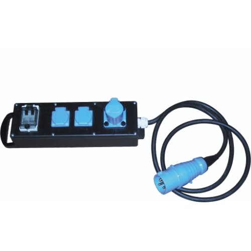 Dieser Adapter kann verwendet werden, um eine 3 Polige CE Steckdose 32A in 3 herkömmliche 2 Polige Schuko Steckdosen (230V) zu verwandeln. Die Steckdosenleiste wird einfach in den CE Anschluss eingesteckt und beinhaltet 3 Schuko Steckdosen (230V), auf die der Strom verteilt wird.