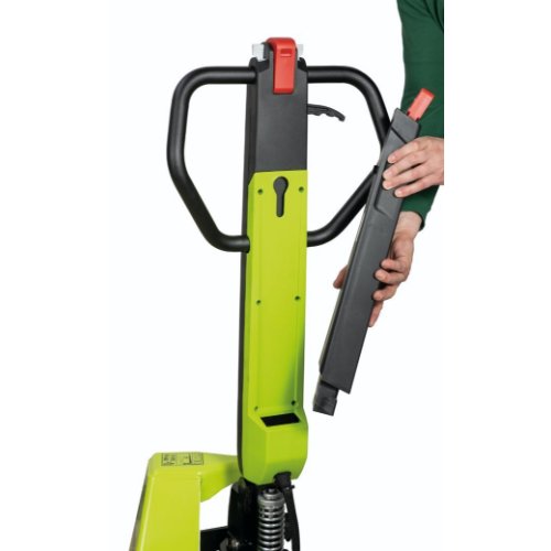 Diese zusätzliche 36V/10,4Ah LI-ION Batterie kann als Wechselbatterie dienen, wenn der Hubwagen unter Dauerbetrieb verwendet werden soll. So kann immer eine Batterie geladen werden, während die andere im Einsatz ist. Die Laufzeit einer vollgeladenen Batterie im Dauereinsatz bei Höchstgeschwindigkeit und einer durchschnittlichen Last von 600 Kg beträgt 1,5 Stunden. Mit dem erhältlichen Schnelladegerät kann die Batterie innerhalb 2 Stunden voll aufgeladen werden, was einen Einsatz rund um die Uhr, ohne Wartezeit fürs Laden ermöglicht.