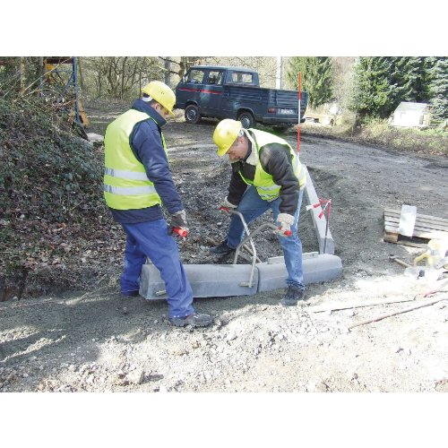 Es wird empfohlen, die Bordsteinzange paarweise zu verwenden. Zum Setzen von Bordsteinen, Randsteinen, Rinnensteinen oder dergleichen. Auch für Naturbordsteine.