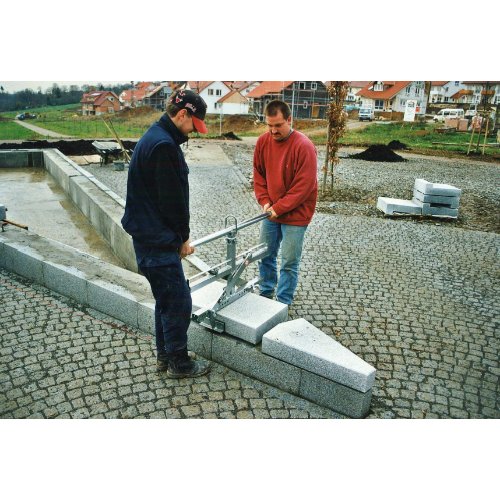 Geeignet für Trittstufen, Bordsteine, Randwinkel, L-Steine und dergleichen. Einhängeöse für Kranhaken.