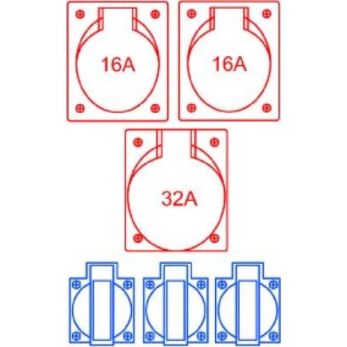 - CEE-Steckdosen (16 A / 400 V / 5-polig): 2 Stück