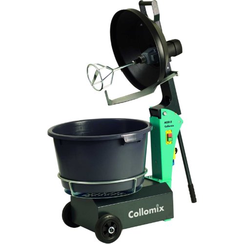 Kleinmengenmischer mit schnelllaufendem Mischwerk und extra angetriebenem Mischeimer für gründliche Durchmischung, für Mengen bis max. 50 kg; mit Rand- und Bodenabstreifer und zwei austauschbaren Mischwerkzeugen (KR/DLX) mit M14 Gewindeanschluss; mit Sicherheitsabschaltung; KR geeignet für Fliesenkleber, Spachtel, Putz, Mörtel, Estrich etc. DLX geeignet für Dünnbettmörtel, flüssige Beschichtungen, Fugenmörtel etc., auswechselbarer 65-Liter-Kunststoffkübel.