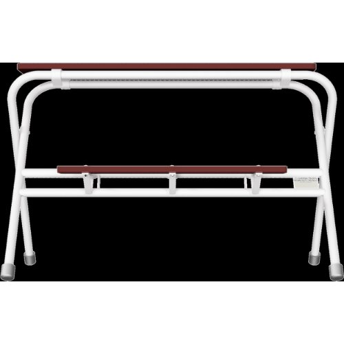 - Die Berührungsflächen der Stahlkonstruktion mit dem Boden sind mit einem Gummifuß ummantelt, der für einen schonenden Einsatz auch im Wohnbereich garantiert.