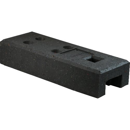 Der Bauzaunfuß aus Kunststoffrecycling ist für den standfesten Aufbau von Mobilzäunen ausgelegt. Das Bauteil ist schwarz, wiegt 26 kg und misst 690 mm in der Länge, 255 mm in der Breite und 140 mm in der Höhe. Die flach aufliegende Grundform bietet eine stabile Aufstandsfläche für Zaunfelder. Fünf integrierte Einstecköffnungen ermöglichen die direkte Aufnahme gängiger Pfosten: vier runde Aufnahmen mit 42 mm Durchmesser für Bauzaunstandrohre sowie eine quadratische Öffnung 60 x 60 mm für passende Vierkantpfosten. So lassen sich Zaunelemente mit unterschiedlichen Rohrquerschnitten ohne zusätzliche Adapter stecken. Das hohe Eigengewicht unterstützt den sicheren Stand der Konstruktion, indem es die Kräfte der Zaunfelder in den Untergrund einleitet. Der Bauzaunfuß wird am gewünschten Stellplatz positioniert, anschließend werden die Standrohre in die vorgesehenen Öffnungen eingesteckt. Abmessungen und Lochbild sind auf Mobilzäune abgestimmt und erleichtern den zügigen Aufbau temporärer Absperrungen im Betrieb, auf dem Gelände oder entlang von Arbeitsbereichen.
