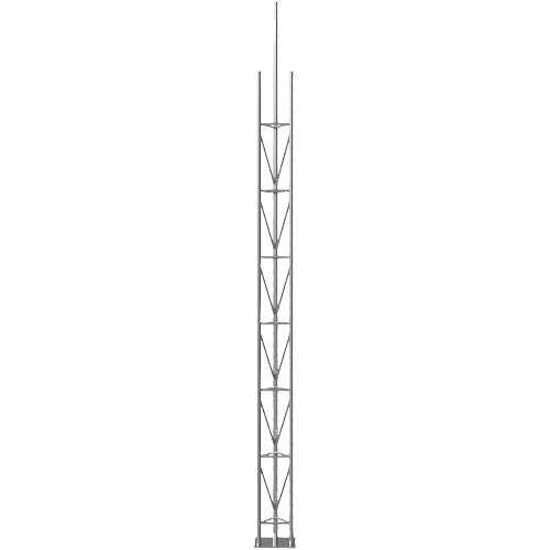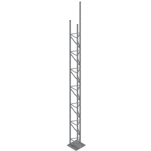 Der Gitterrohrmast dient als Tragkonstruktion für Ampelanlagen und große Beschilderungen. Er misst in der Gesamtlänge 6150 mm und liegt in verzinkter Ausführung vor, wodurch die Oberfläche gegen Korrosion geschützt ist. Die Montage ist für die Verwendung mit einem Aufstellrahmen vorgesehen. Dazu besitzt die 450 x 450 mm große Grundplatte Bohrungen für die Aufnahme am Aufstellrahmen. Die Tragstruktur setzt sich aus Standrohren mit 48 mm Durchmesser sowie Querrohren und Diagonalholmen mit 26 mm Durchmesser zusammen; die Gitterbauweise verbindet die Elemente formstabil. Im Lieferumfang ist ein verlängertes Rohr Ø 48 x 3,2 mm enthalten, das zusätzliche Aufbauhöhe ermöglicht. Eine integrierte Adapterplatte ist vorhanden und dient der Anbindung von Aufbauten wie Signal- oder Schilderträgern. Abmessungen und Ausführung sind auf Anwendungen im Verkehrsbereich ausgelegt, bei denen großflächige Anzeigen oder Signale getragen werden.