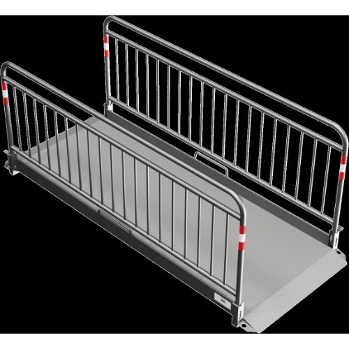 - inkl. Auffahrrampe, Grundgestell, Geländer und Belag aus Aluminium