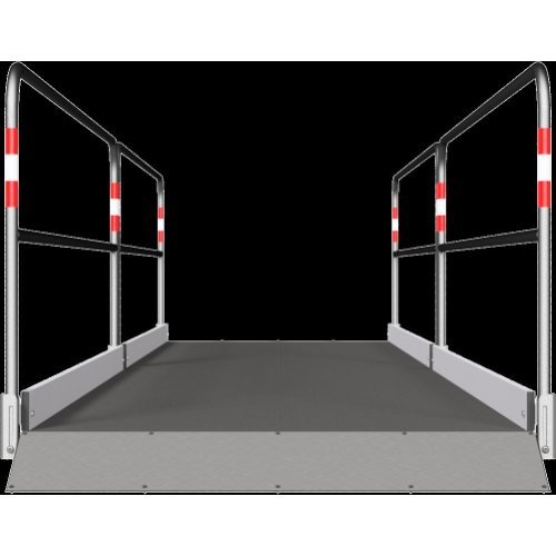 - die Seitengeländer sind mit rot-weiß-roten Reflektorstreifen ausgestattet.