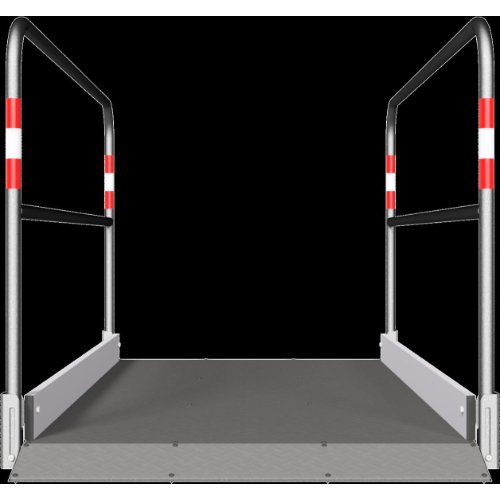 - die Seitengeländer sind mit rot-weiß-roten Reflektorstreifen ausgestattet.