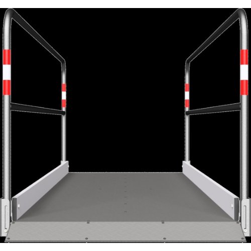 - die Seitengeländer sind mit rot-weiß-roten Reflektorstreifen ausgestattet.