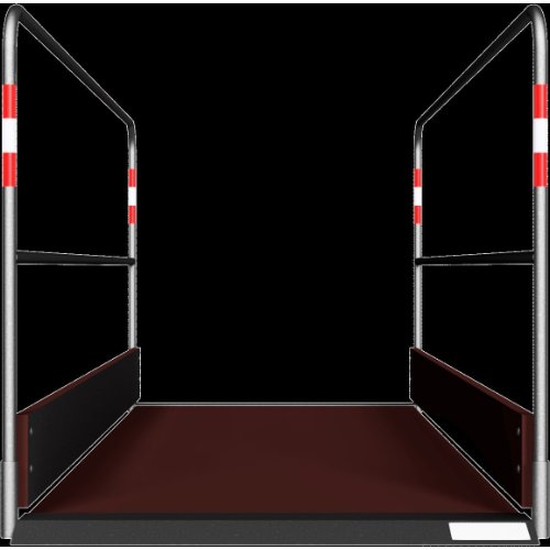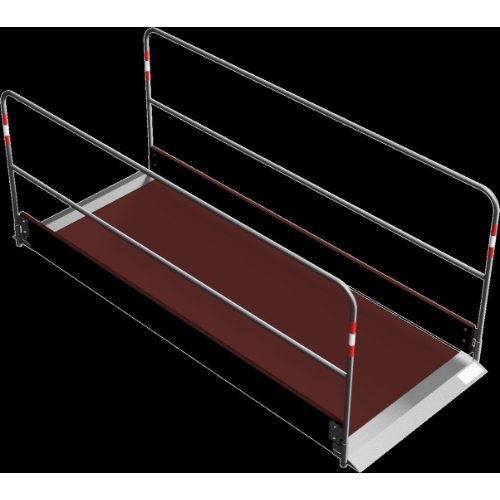 • die Seitengeländer sind mit rot-weiß-roten Reflektorstreifen ausgestattet