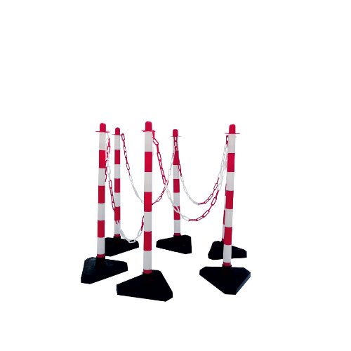 - 6 Stück Kettenständer aus Kunststoff Pfosten Ø 40mm, Länge: 900mm weiß / rot, mit Ösen Fußplatte dreieckig, ca. 3 kg