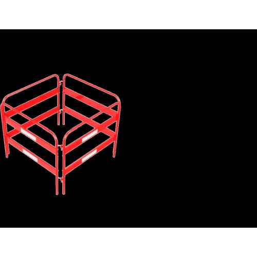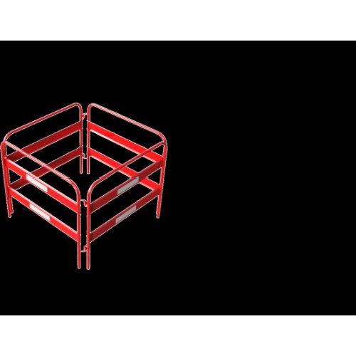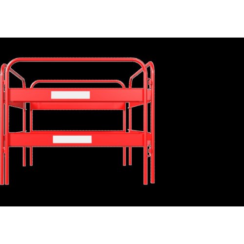 - rot beschichtetes Stahlgestell mit weißen Reflexstreifen beklebt, die zusätzliche Sicherheit bieten