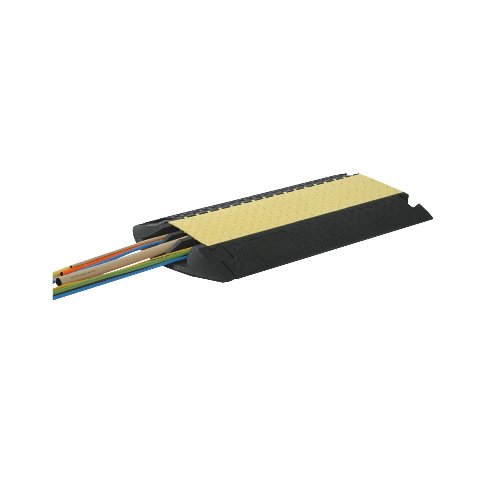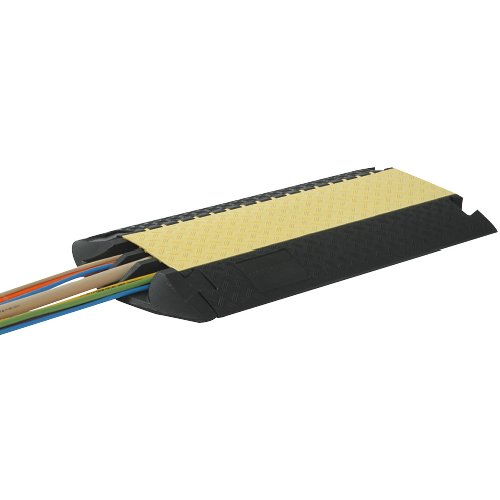 Das Überfahrschutz System B – Mittelstück dient der Führung von Kabeln und Schläuchen und ist für Überfahrungen bis 20 t ausgelegt. Drei getrennte Durchlasskanäle mit jeweils 50 x 50 mm bieten Platz für Leitungen bis 50 mm Querschnitt. Das Element misst 600 x 1000 x 80 mm; die Aufbauhöhe von 80 mm schafft eine ebene Überfahrfläche. Die Kanäle sind durch zu öffnende Deckel geschützt. Zum Einlegen werden die Deckel aufgeklappt, danach schließen sie die Kanäle ab und schützen die Leitungen während des Betriebs. Als Teil eines modularen Systems wird das Mittelstück mit 1 Paar (2 Stück) Verbindungszapfen geliefert. Über diese Zapfen lassen sich mehrere Elemente ohne Befestigungsmaterial verbinden und zu längeren Strecken zusammenfügen. So entsteht eine kontinuierliche Führung für Kabel und Schläuche, die das Überfahren in Arbeits- und Verkehrsbereichen ermöglicht und die Leitungen vor direkter Radlast abschirmt.