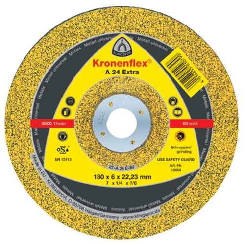 Schruppscheibe für Metall Für beste Schleifleistung mit hoher Standzeit. Für allgemeine Metallbearbeitung, universell einsetzbar, zum freihändigen Arbeiten bei 80 m/s Umfangsgeschwindigkeit, gekröpfte Ausführung.