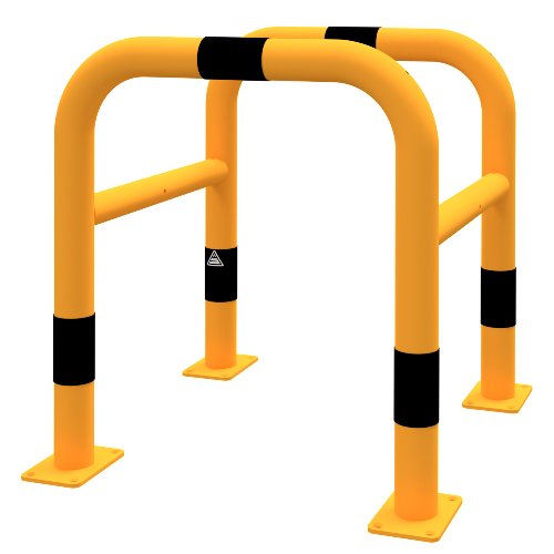Umlaufender Baumschutz und Säulenschutz zur Absicherung von Bäumen, Pfosten und Stützen auf Verkehrs- und Arbeitsflächen in Außenanlagen, auf Parkflächen und in Betrieben. Die Konstruktion besteht aus zwei steckbaren Rohrbügeln mit Ø 60 mm. Angeschweißte Stutzen mit Ø 48 mm ermöglichen das ineinandersteckende Verbinden der Bügel zu einem geschlossenen Rahmen, der vor Ort ohne aufwendige Anpassungen montiert wird. Die gelbe Beschichtung mit schwarzen Warnstreifen kennzeichnet den Schutzbereich deutlich und unterstützt die Wahrnehmung beim Rangieren. Der montierte Rahmen misst 600 mm in der Breite und 600 mm in der Tiefe und erreicht eine Höhe von 650 mm, sodass ein umlaufender Schutzraum um Stamm oder Säule entsteht. Die Ausführung ist zum Einbetonieren vorgesehen; eine Dübelbefestigung ist ebenfalls angegeben. Die Steckbauweise erleichtert Transport, Lagerung und Montage und ermöglicht einen schnellen Austausch von Einzelteilen bei Bedarf. So werden Anfahr- und Anstoßschäden wirkungsvoll gemindert.