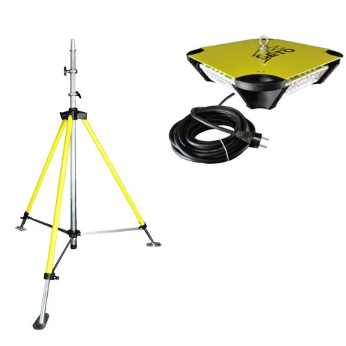 - Robuste Bauweise: Stativ und Leuchte sind für den Baustelleneinsatz konzipiert