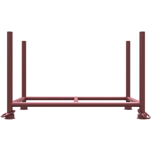 Die Stapelpalette dient in der Lagertechnik der Aufnahme und Bereitstellung von Langwaren. Das nutzbare Füllmaß beträgt 1,30 m x 0,70 m x 0,70 m, sodass die Ware innerhalb definierter Innenmaße gelagert und transportiert wird. Standrohre aus Ø 57 mm Rundrohr und Querholme aus Ø 48,3 mm Rundrohr bilden die tragende Schweißkonstruktion; ein zusätzlich mittig angeschweißter Querholm stabilisiert die Auflage und verteilt Lasten. Die Tragfähigkeit beträgt 1,5 t. Die Handhabung erfolgt im Stapler- und Hubwagenverkehr sowie im Kranbetrieb. Durch die Kontur der Tulpenfüße lassen sich mehrere Paletten standsicher übereinander stapeln. Die lackierte Oberfläche ist für den täglichen Betrieb ausgelegt und lässt sich reinigen. Beladen und Entladen erfolgt stirnseitig in das Füllmaß, der Rahmen hält die Ware sicher zusammen. Damit unterstützt die Stapelpalette geordnete Abläufe bei Kommissionierung, Zwischenlagerung und innerbetrieblichem Transport von Langwaren innerhalb der vorgegebenen Abmessungen.