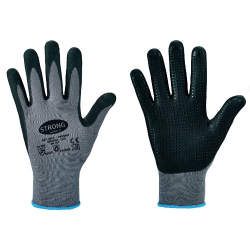 Träger: 90% Polyamid (Nylon), 10% Elasthan, grau / Beschichtung: Nitrilschaum mit Nitrilnoppen, schwarz