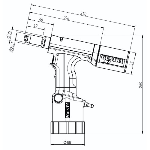 - Sparsamer Druckluftverbrauch durch Zweifach-Nutzung: Setzen des Nietes und Absaugen des Restdornes